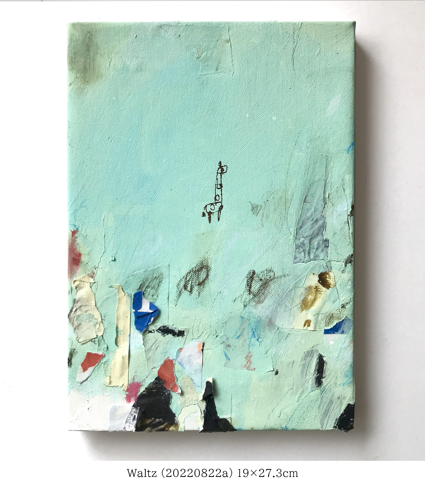 | Waltz 19×27.3cm 2024. Acrylic, silkscreen,mixed media on canvas. For inquiries, please contact SATO GALLERY from here. |