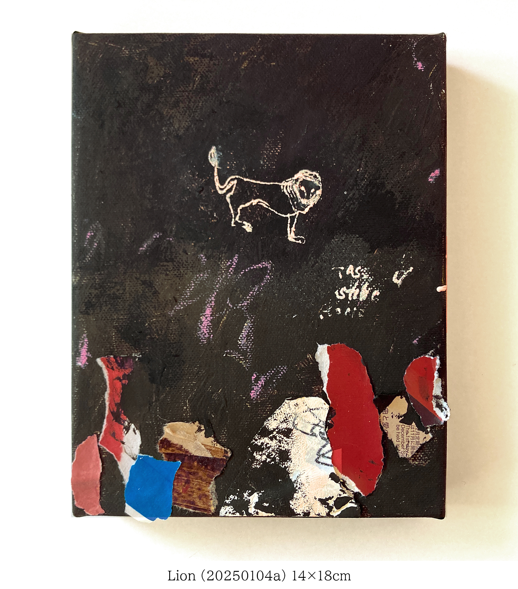 | Lion 14×18cm 2025. Acrylic, silkscreen,mixed media on canvas. For inquiries, please contact SATO GALLERY from here. |