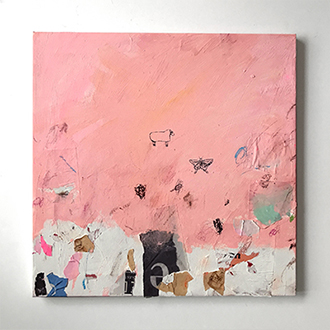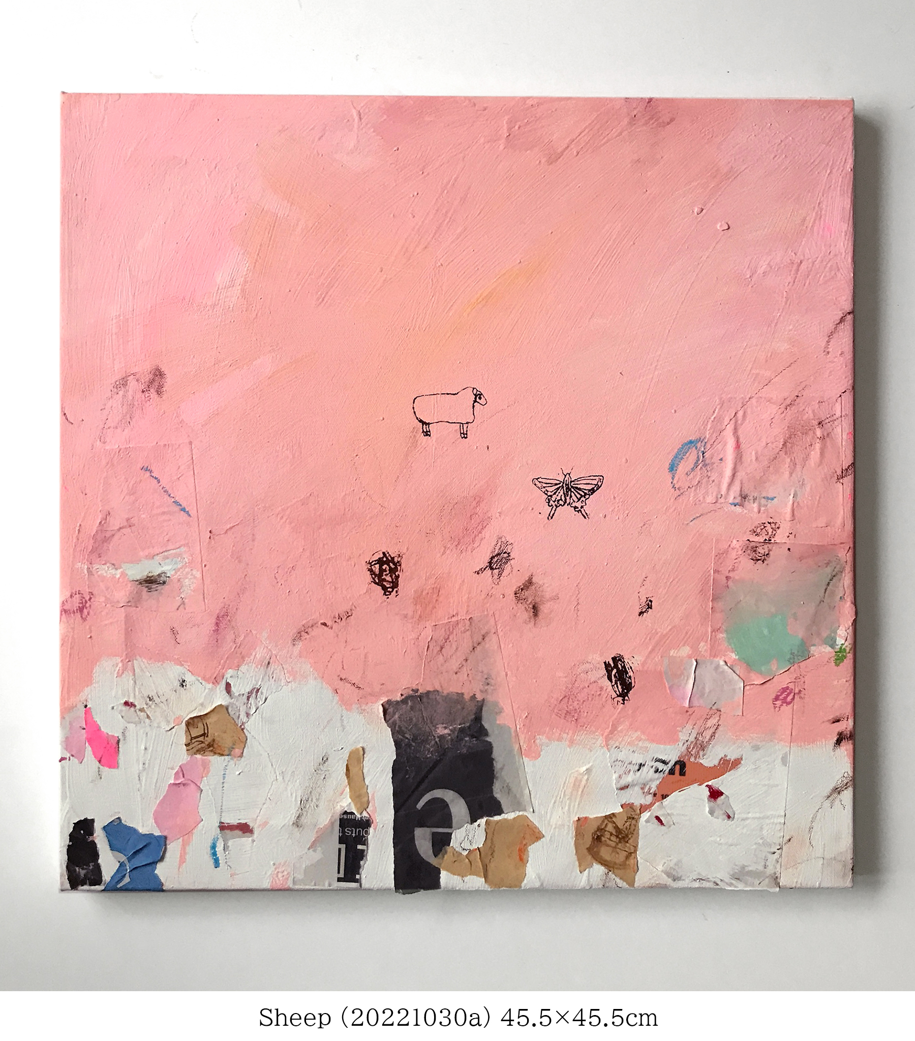 | Sheep 45.5×45.5cm 2022. Acrylic, silkscreen,mixed media on canvas. For inquiries, please contact SATO GALLERY from here. |