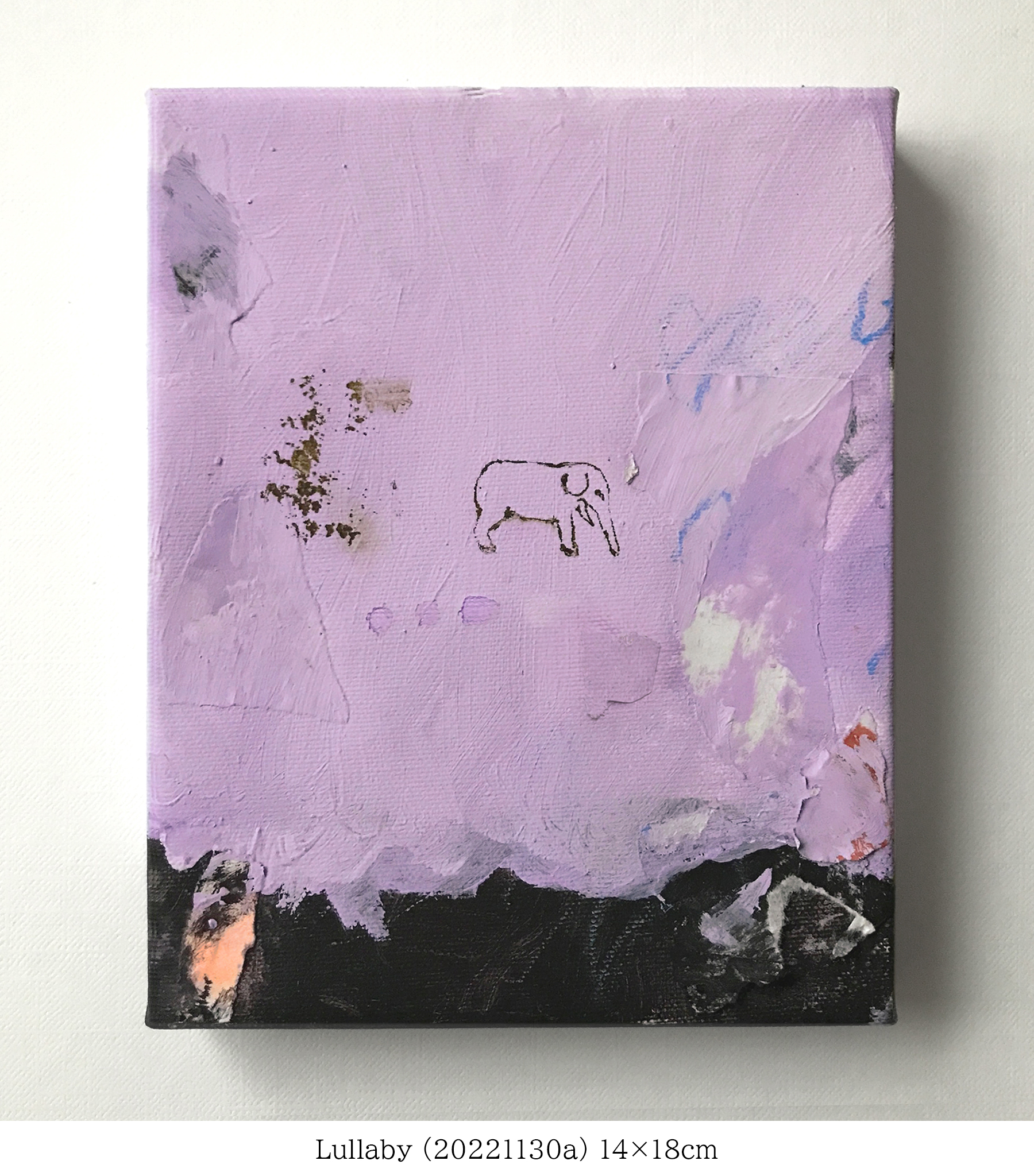 Lullaby 14×18cm 2022. Acrylic, silkscreen,mixed media on canvas. For inquiries, please contact SATO GALLERY from here. |